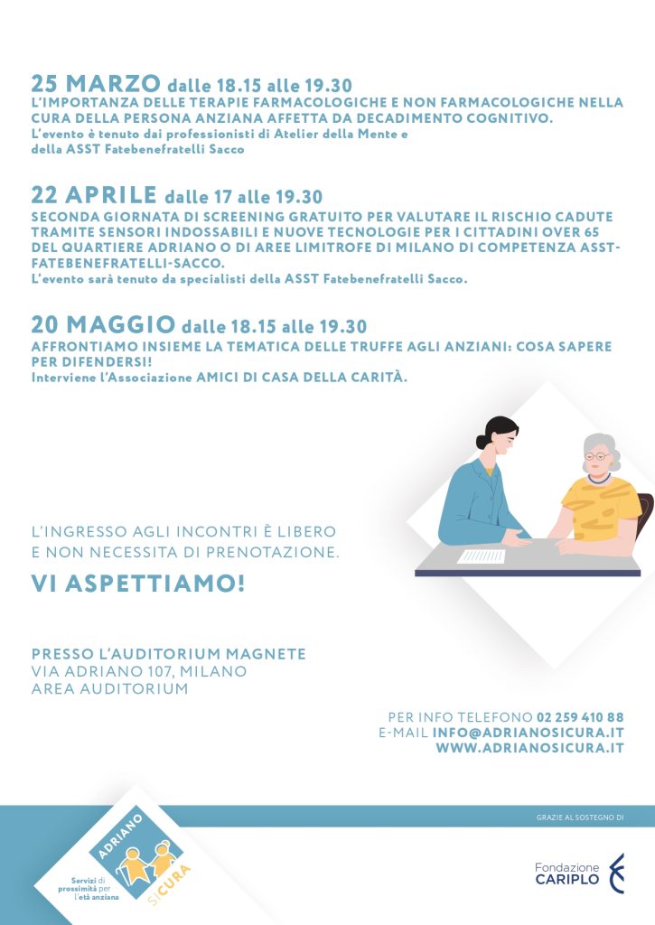 Adriano SiCura inaugura il 2026 con un ricco calendario di incontri gratuiti dedicati alla popolazione anziana del quartiere Adriano di Milano, ai loro familiari e agli assistenti familiari. Gli appuntamenti, aperti alla cittadinanza, vogliono promuovere benessere, prevenzione e momenti di confronto su temi di grande interesse per la terza età.
