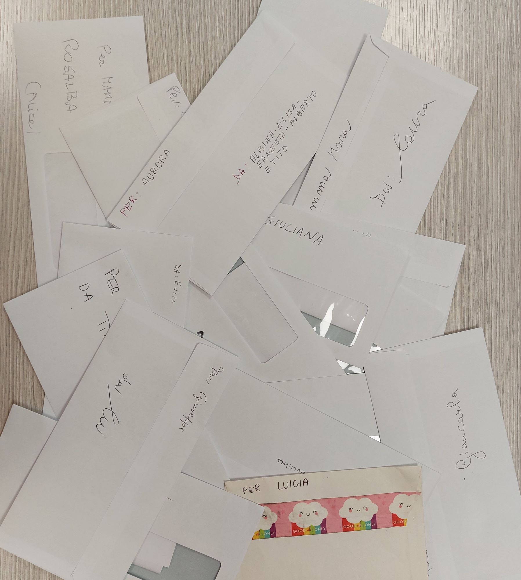 Le lettere sono state appese su grandi cartelloni, come una piccola esposizione di sentimenti, e per una settimana familiari e amici hanno potuto ritirarle, leggerle, emozionarsi.